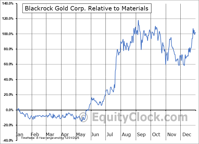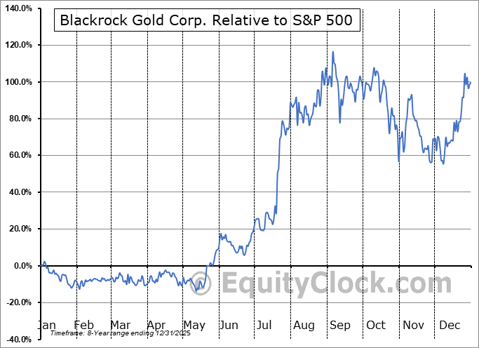 Analysis of the Blackrock Gold Corp. (OTCMKT:BKRRF) seasonal charts above shows that a Buy Date of August 16 and a Sell Date of November 23 has resulted in a geometric average return of 10.24% above the benchmark rate of the S&P 500 Total Return Index over the past 8 years. This seasonal timeframe has shown positive results compared to the benchmark in 7 of those periods. This is a very good rate of success and the return strongly outperforms the relative buy-and-hold performance of the stock over the past 8 years by an average of 4.1% per year.