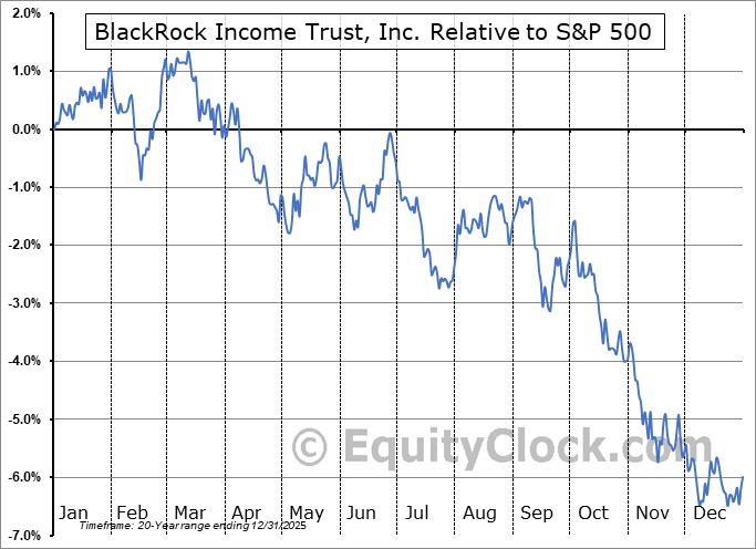 Analysis of the BlackRock Income Trust, Inc. (NYSE:BKT) seasonal charts above shows that a Buy Date of December 23 and a Sell Date of March 13 has resulted in a geometric average return of 1.18% above the benchmark rate of the S&P 500 Total Return Index over the past 20 years. This seasonal timeframe has shown positive results compared to the benchmark in 11 of those periods. This is a fair rate of success and the return strongly outperforms the relative buy-and-hold performance of the stock over the past 20 years by an average of 7.65% per year.