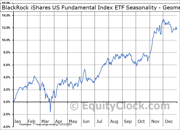 Analysis of the BlackRock iShares US Fundamental Index ETF (NEO:CLU/C.NE) seasonal charts above shows that a Buy Date of August 31 and a Sell Date of November 23 has resulted in a geometric average return of 2.62% above the benchmark rate of the S&P 500 Total Return Index over the past 7 years. This seasonal timeframe has shown positive results compared to the benchmark in 7 of those periods. This is an excellent rate of success and the return strongly outperforms the relative buy-and-hold performance of the stock over the past 7 years by an average of 4.12% per year.