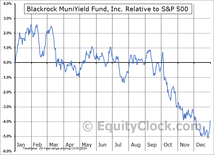 Analysis of the Blackrock MuniYield Fund, Inc. (NYSE:MYD) seasonal charts above shows that a Buy Date of November 11 and a Sell Date of January 31 has resulted in a geometric average return of 2.81% above the benchmark rate of the S&P 500 Total Return Index over the past 20 years. This seasonal timeframe has shown positive results compared to the benchmark in 14 of those periods. This is a good rate of success and the return strongly outperforms the relative buy-and-hold performance of the stock over the past 20 years by an average of 8.09% per year.