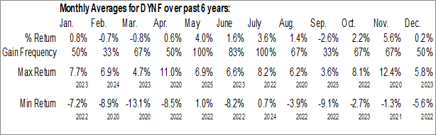 To download DYNF seasonal chart data, please log in or Subscribe.