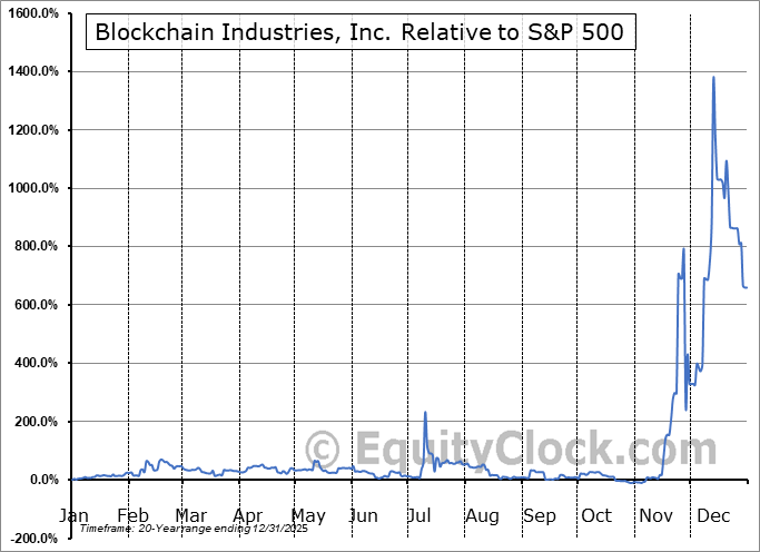 Analysis of the Blockchain Industries, Inc. (OTCMKT:BCII) seasonal charts above shows that a Buy Date of January 3 and a Sell Date of April 6 has resulted in a geometric average return of 14.29% above the benchmark rate of the S&P 500 Total Return Index over the past 20 years. This seasonal timeframe has shown positive results compared to the benchmark in 13 of those periods. This is a good rate of success and the return strongly outperforms the relative buy-and-hold performance of the stock over the past 20 years by an average of 114.29% per year.