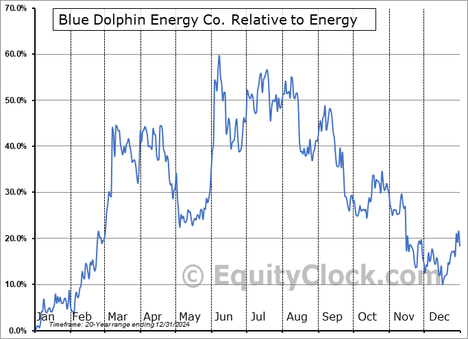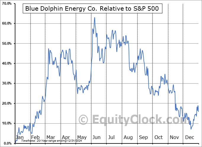 Analysis of the Blue Dolphin Energy Co. (OTCMKT:BDCO) seasonal charts above shows that a Buy Date of January 4 and a Sell Date of March 25 has resulted in a geometric average return of 25.32% above the benchmark rate of the S&P 500 Total Return Index over the past 20 years. This seasonal timeframe has shown positive results compared to the benchmark in 18 of those periods. This is an excellent rate of success and the return strongly outperforms the relative buy-and-hold performance of the stock over the past 20 years by an average of 39.5% per year.