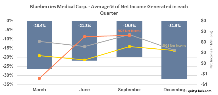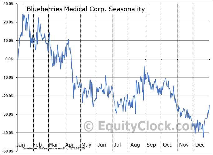 Blueberries Medical Corp. (OTCMKT:BBRRF) Seasonal Chart
