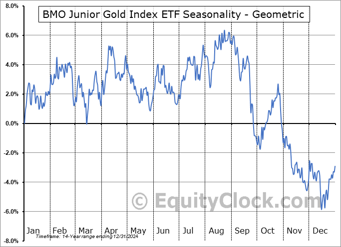 BMO Junior Gold Index ETF (TSE:ZJG.TO) Seasonal Chart