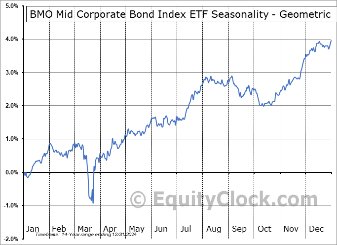 BMO Mid Corporate Bond Index ETF (TSE:ZCM.TO) Seasonal Chart