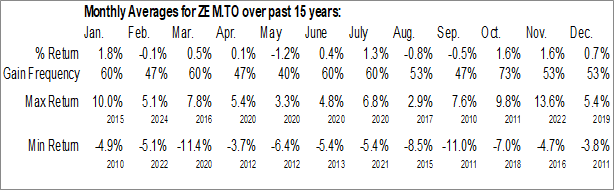 To download ZEM.TO seasonal chart data, please log in or Subscribe.