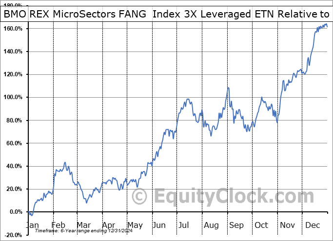 Analysis of the BMO REX MicroSectors FANG Index 3X Leveraged ETN (NYSE:FNGU) seasonal charts above shows that a Buy Date of May 23 and a Sell Date of August 31 has resulted in a geometric average return of 30.7% above the benchmark rate of the S&P 500 Total Return Index over the past 6 years. This seasonal timeframe has shown positive results compared to the benchmark in 6 of those periods. This is an excellent rate of success, but the return underperforms the relative buy-and-hold performance of the stock over the past 6 years by an average of 13.32% per year.