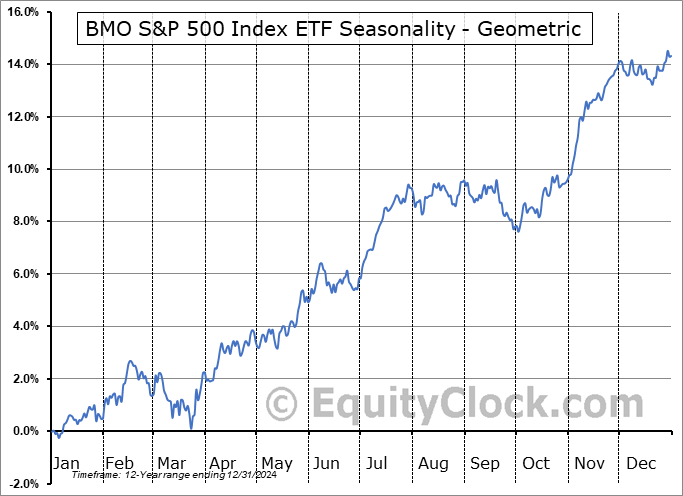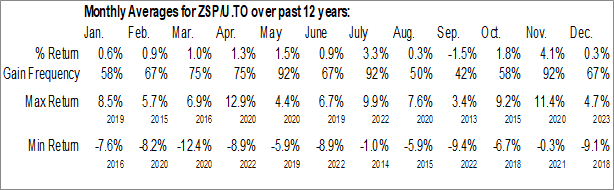 BMO S&P 500 Index ETF (TSE:ZSP/U.TO) Seasonal Chart