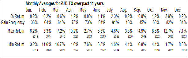 To download ZUD.TO seasonal chart data, please log in or Subscribe.