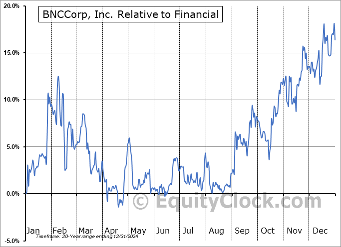 Analysis of the BNCCorp, Inc. (OTCMKT:BNCC) seasonal charts above shows that a Buy Date of November 10 and a Sell Date of February 9 has resulted in a geometric average return of 7.3% above the benchmark rate of the S&P 500 Total Return Index over the past 20 years. This seasonal timeframe has shown positive results compared to the benchmark in 14 of those periods. This is a good rate of success and the return strongly outperforms the relative buy-and-hold performance of the stock over the past 20 years by an average of 10.15% per year.