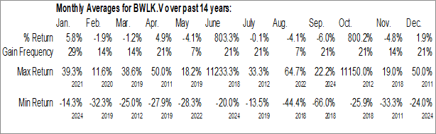 To download BWLK.V seasonal chart data, please log in or Subscribe.