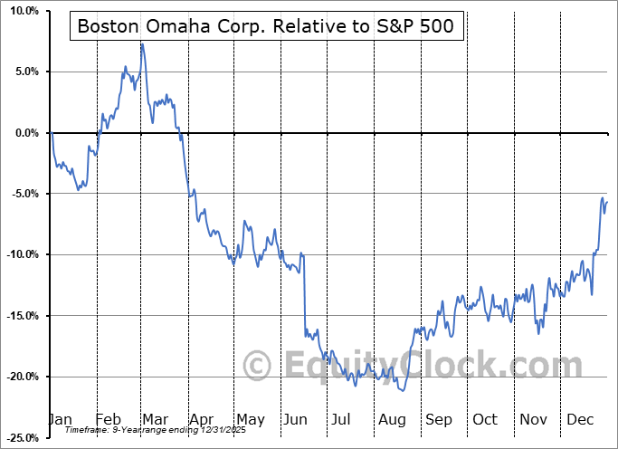 Analysis of the Boston Omaha Corp. (NYSE:BOC) seasonal charts above shows that a Buy Date of August 20 and a Sell Date of November 8 has resulted in a geometric average return of 8.51% above the benchmark rate of the S&P 500 Total Return Index over the past 9 years. This seasonal timeframe has shown positive results compared to the benchmark in 7 of those periods. This is a good rate of success and the return strongly outperforms the relative buy-and-hold performance of the stock over the past 9 years by an average of 23.34% per year.