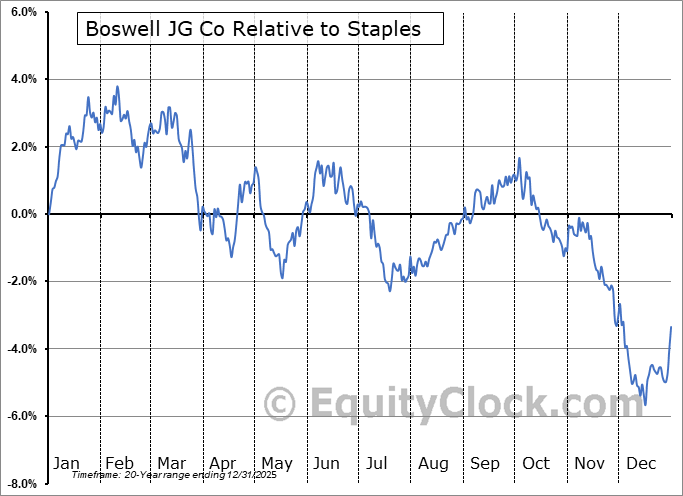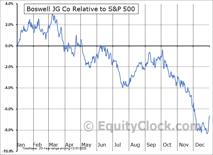 Analysis of the Boswell JG Co (OTCMKT:BWEL) seasonal charts above shows that a Buy Date of December 26 and a Sell Date of March 28 has resulted in a geometric average return of 1.02% above the benchmark rate of the S&P 500 Total Return Index over the past 20 years. This seasonal timeframe has shown positive results compared to the benchmark in 14 of those periods. This is a good rate of success and the return strongly outperforms the relative buy-and-hold performance of the stock over the past 20 years by an average of 9.98% per year.