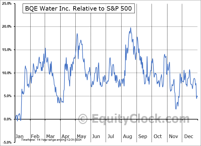 Analysis of the BQE Water Inc. (TSXV:BQE.V) seasonal charts above shows that a Buy Date of November 22 and a Sell Date of February 18 has resulted in a geometric average return of 8.66% above the benchmark rate of the S&P 500 Total Return Index over the past 14 years. This seasonal timeframe has shown positive results compared to the benchmark in 11 of those periods. This is a good rate of success and the return strongly outperforms the relative buy-and-hold performance of the stock over the past 14 years by an average of 22.77% per year.