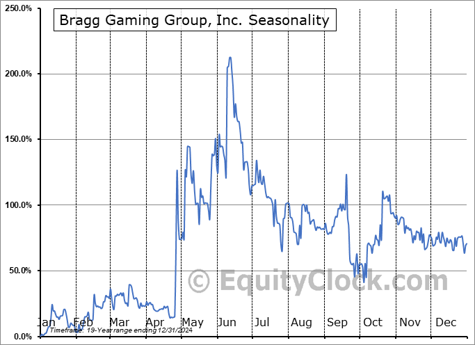 Bragg Gaming Group, Inc. (TSE:BRAG.TO) Seasonal Chart