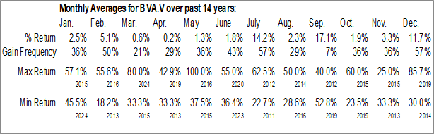 To download BVA.V seasonal chart data, please log in or Subscribe.