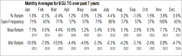 To download BGU.TO seasonal chart data, please log in or Subscribe.