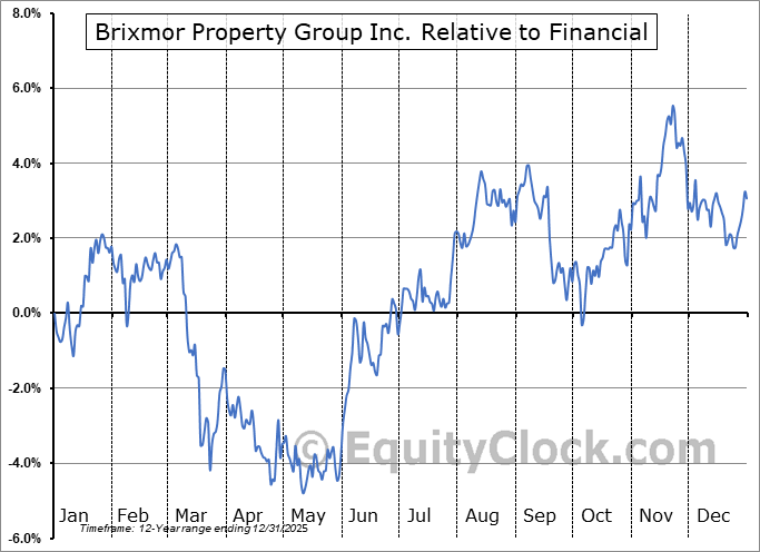 Analysis of the Brixmor Property Group Inc. (NYSE:BRX) seasonal charts above shows that a Buy Date of May 23 and a Sell Date of August 13 has resulted in a geometric average return of 4.5% above the benchmark rate of the S&P 500 Total Return Index over the past 11 years. This seasonal timeframe has shown positive results compared to the benchmark in 10 of those periods. This is an excellent rate of success and the return strongly outperforms the relative buy-and-hold performance of the stock over the past 11 years by an average of 9.17% per year.