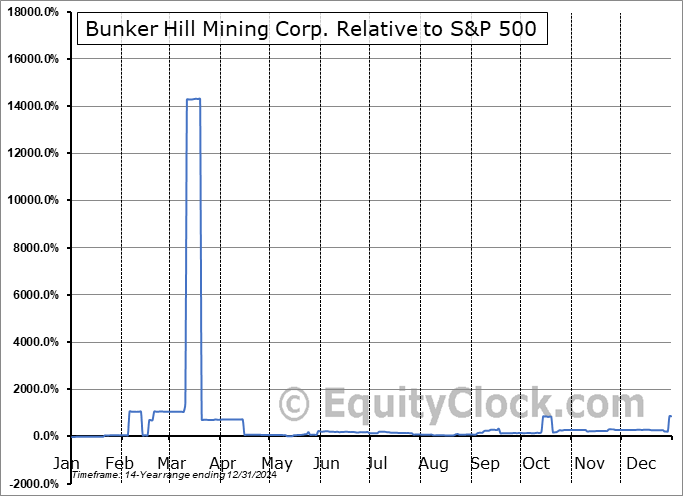 Analysis of the Bunker Hill Mining Corp. (OTCMKT:BHLL) seasonal charts above shows that a Buy Date of May 4 and a Sell Date of September 12 has resulted in a geometric average return of 37.54% above the benchmark rate of the S&P 500 Total Return Index over the past 14 years. This seasonal timeframe has shown positive results compared to the benchmark in 10 of those periods. This is a good rate of success and the return strongly outperforms the relative buy-and-hold performance of the stock over the past 14 years by an average of 54.55% per year.