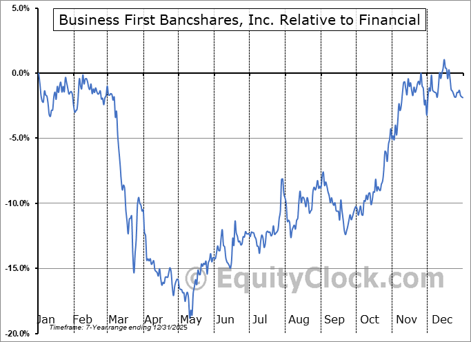 Analysis of the Business First Bancshares, Inc. (NASD:BFST) seasonal charts above shows that a Buy Date of August 5 and a Sell Date of November 11 has resulted in a geometric average return of 10.43% above the benchmark rate of the S&P 500 Total Return Index over the past 7 years. This seasonal timeframe has shown positive results compared to the benchmark in 7 of those periods. This is an excellent rate of success and the return strongly outperforms the relative buy-and-hold performance of the stock over the past 7 years by an average of 22.31% per year.