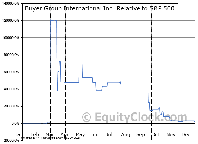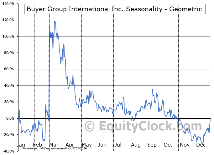 Analysis of the Buyer Group International Inc. (OTCMKT:BYRG) seasonal charts above shows that a Buy Date of November 26 and a Sell Date of March 10 has resulted in a geometric average return of 184.81% above the benchmark rate of the S&P 500 Total Return Index over the past 14 years. This seasonal timeframe has shown positive results compared to the benchmark in 9 of those periods. This is a fair rate of success and the return strongly outperforms the relative buy-and-hold performance of the stock over the past 14 years by an average of 198.42% per year.