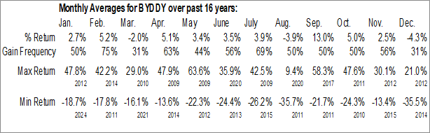 To download BYDDY seasonal chart data, please log in or Subscribe.
