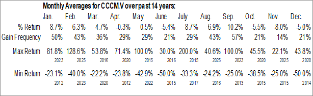 C3 Metals Inc. (TSXV:CCCM.V) Seasonal Chart