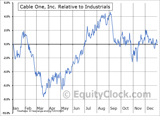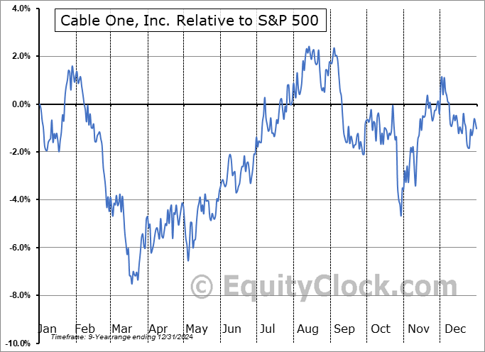 Analysis of the Cable One, Inc. (NYSE:CABO) seasonal charts above shows that a Buy Date of May 25 and a Sell Date of August 13 has resulted in a geometric average return of 3.99% above the benchmark rate of the S&P 500 Total Return Index over the past 9 years. This seasonal timeframe has shown positive results compared to the benchmark in 8 of those periods. This is a very good rate of success and the return strongly outperforms the relative buy-and-hold performance of the stock over the past 9 years by an average of 17.29% per year.