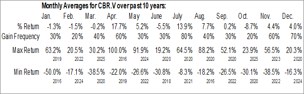To download CBR.V seasonal chart data, please log in or Subscribe.