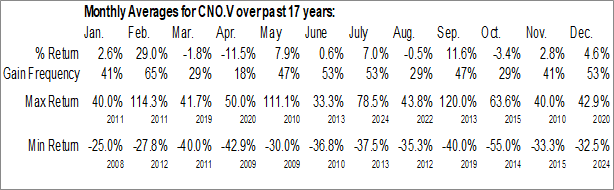 To download CNO.V seasonal chart data, please log in or Subscribe.