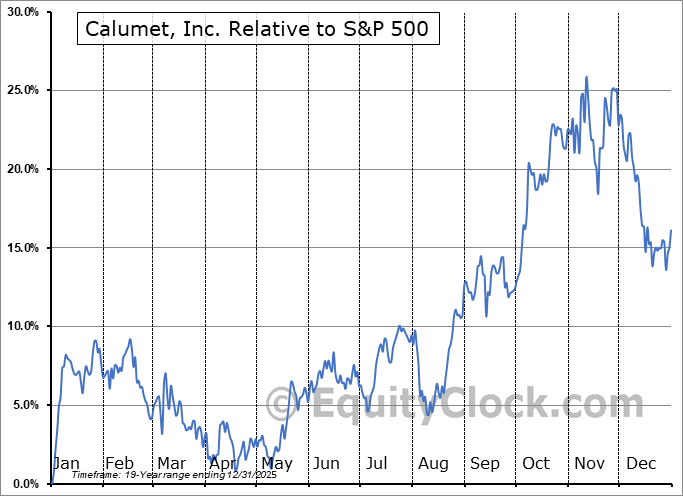 Analysis of the Calumet, Inc. (NASD:CLMT) seasonal charts above shows that a Buy Date of May 9 and a Sell Date of September 6 has resulted in a geometric average return of 10.13% above the benchmark rate of the S&P 500 Total Return Index over the past 19 years. This seasonal timeframe has shown positive results compared to the benchmark in 15 of those periods. This is a good rate of success and the return strongly outperforms the relative buy-and-hold performance of the stock over the past 19 years by an average of 19.07% per year.