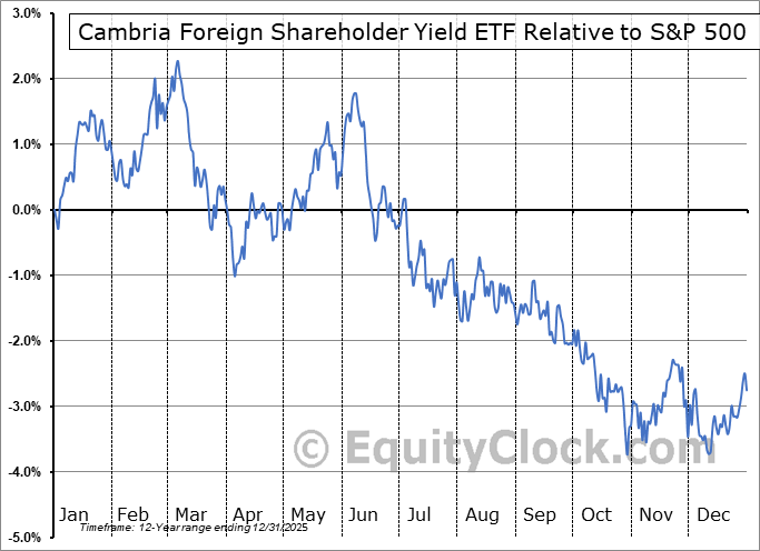 Analysis of the Cambria Foreign Shareholder Yield ETF (AMEX:FYLD) seasonal charts above shows that a Buy Date of December 12 and a Sell Date of April 15 has resulted in a geometric average return of 0.15% above the benchmark rate of the S&P 500 Total Return Index over the past 10 years. This seasonal timeframe has shown positive results compared to the benchmark in 10 of those periods. This is an excellent rate of success and the return strongly outperforms the relative buy-and-hold performance of the stock over the past 10 years by an average of 8.53% per year.