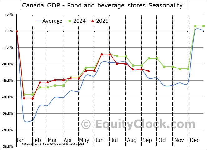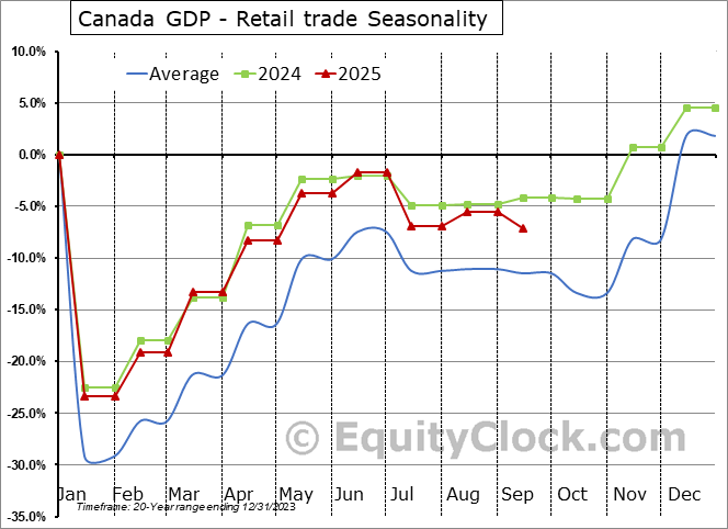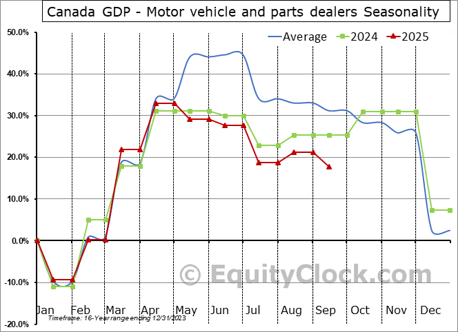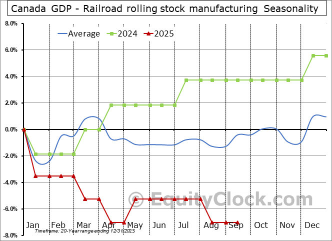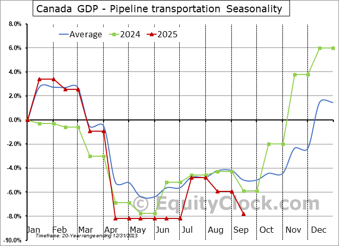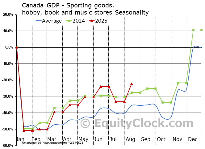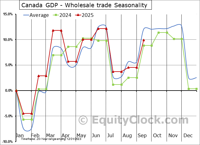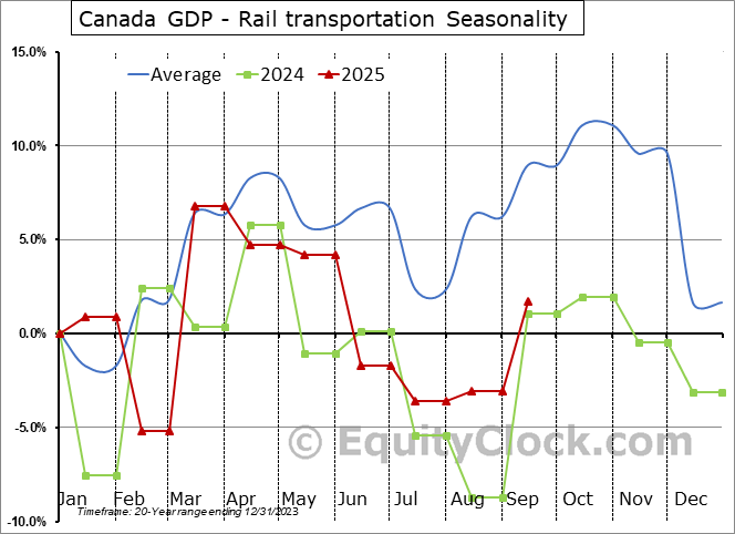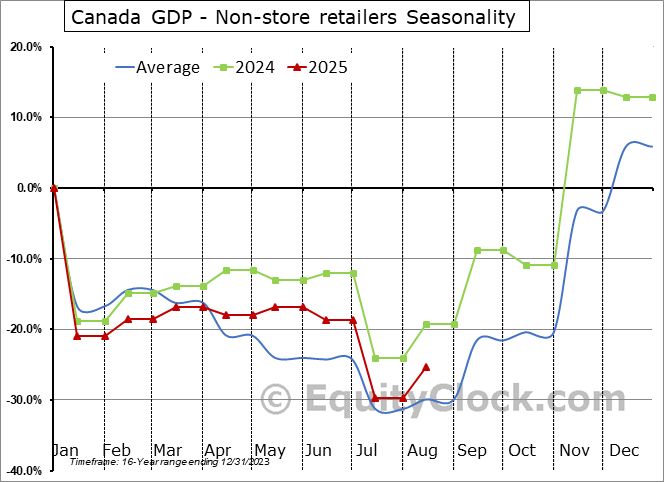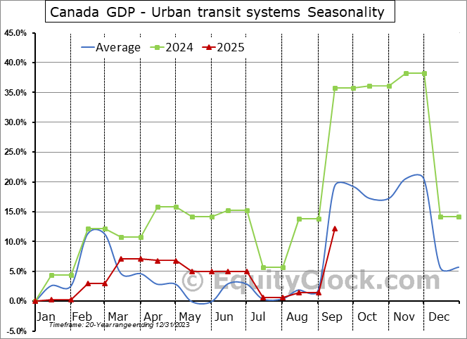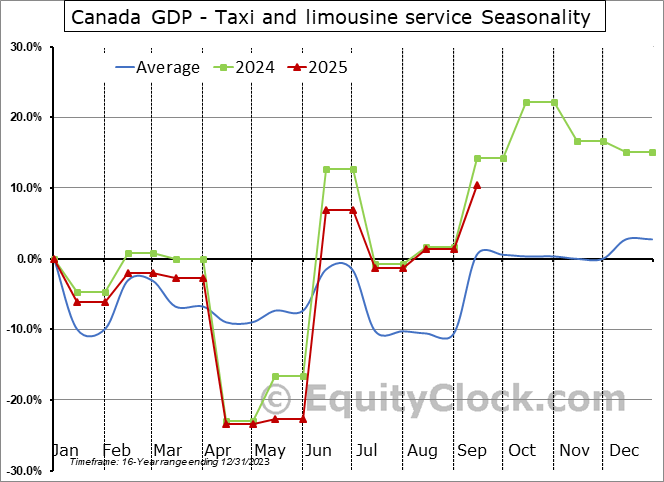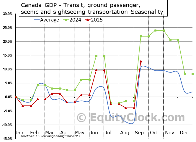 Canada GDP - Railroad rolling stock manufacturing Seasonal Chart Canada GDP - Ship and boat building Seasonal Chart Canada GDP - Furniture and related product manufacturing Seasonal Chart Canada GDP - Office furniture (including fixtures) manufacturing Seasonal Chart Canada GDP - Other furniture-related product manufacturing Seasonal Chart Canada GDP - Medical equipment and supplies manufacturing Seasonal Chart Canada GDP - Wholesale trade Seasonal Chart Canada GDP - Retail trade Seasonal Chart Canada GDP - Motor vehicle and parts dealers Seasonal Chart Canada GDP - Furniture and home furnishings stores Seasonal Chart Canada GDP - Electronics and appliance stores Seasonal Chart Canada GDP - Building material and garden equipment and supplies dealers Seasonal Chart Canada GDP - Food and beverage stores Seasonal Chart Canada GDP - Health and personal care stores Seasonal Chart Canada GDP - Gasoline stations Seasonal Chart Canada GDP - Clothing and clothing accessories stores Seasonal Chart Canada GDP - Sporting goods, hobby, book and music stores Seasonal Chart Canada GDP - General merchandise stores Seasonal Chart Canada GDP - Non-store retailers Seasonal Chart Canada GDP - Transportation and warehousing Seasonal Chart Canada GDP - Air transportation Seasonal Chart Canada GDP - Rail transportation Seasonal Chart Canada GDP - Water transportation Seasonal Chart Canada GDP - Truck transportation Seasonal Chart Canada GDP - Transit, ground passenger, scenic and sightseeing transportation Seasonal Chart Canada GDP - Urban transit systems Seasonal Chart Canada GDP - Taxi and limousine service Seasonal Chart Canada GDP - Pipeline transportation Seasonal Chart Canada GDP - Pipeline transportation of natural gas Seasonal Chart Canada GDP - Crude oil and other pipeline transportation Seasonal Chart Canada GDP - Couriers and messengers Seasonal Chart Canada GDP - Warehousing and storage Seasonal Chart Canada GDP - Radio and television broadcasting Seasonal Chart Canada GDP - Finance and insurance Seasonal Chart Canada GDP - Banking, monetary authorities and other depository credit intermediation Seasonal Chart Canada GDP - Real estate Seasonal Chart Canada GDP - Rental and leasing services Seasonal Chart Canada GDP - Automotive equipment rental and leasing Seasonal Chart Canada GDP - Professional, scientific and technical services Seasonal Chart Canada GDP - Legal, accounting and related services Seasonal Chart