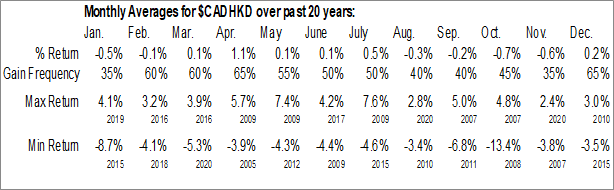 Canadian Dollar to Hong Kong Dollar (CAD-HKD) Seasonal Chart