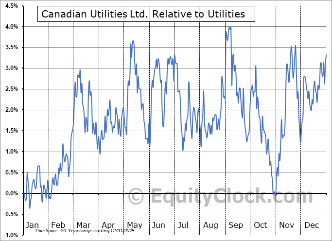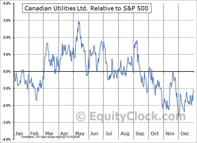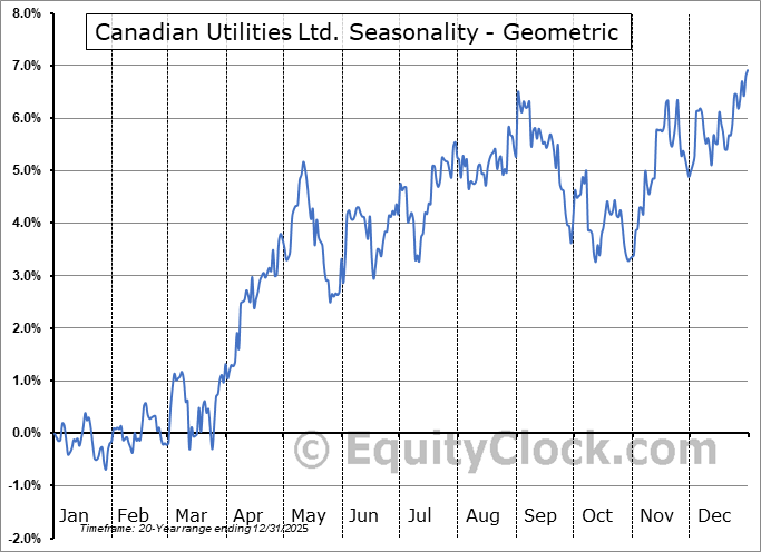 Analysis of the Canadian Utilities Ltd. (OTCMKT:CDUAF) seasonal charts above shows that a Buy Date of November 30 and a Sell Date of March 10 has resulted in a geometric average return of 2.39% above the benchmark rate of the S&P 500 Total Return Index over the past 20 years. This seasonal timeframe has shown positive results compared to the benchmark in 14 of those periods. This is a good rate of success and the return strongly outperforms the relative buy-and-hold performance of the stock over the past 20 years by an average of 5.84% per year.
