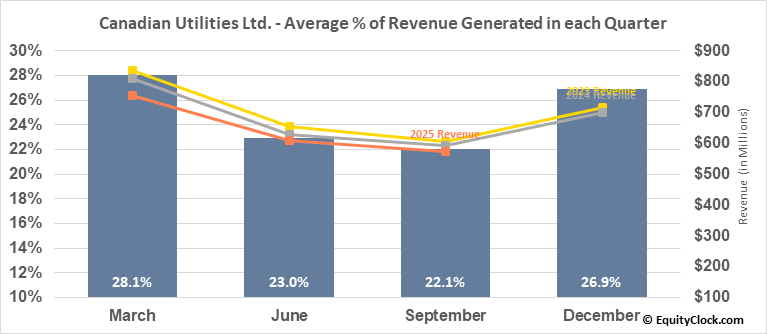 Canadian Utilities Ltd. (OTCMKT:CDUAF) Seasonal Chart