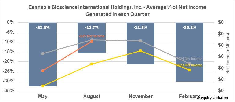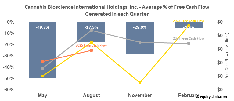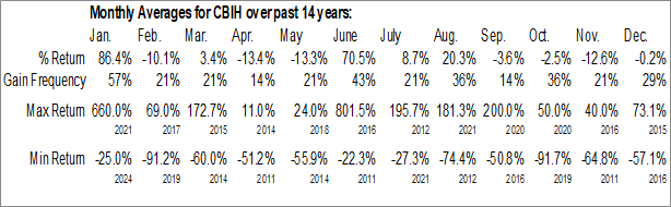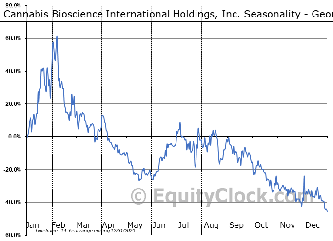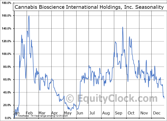 Cannabis Bioscience International Holdings, Inc. (OTCMKT:CBIH) Seasonal Chart