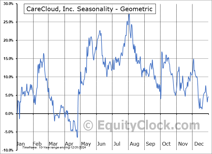 Analysis of the CareCloud, Inc. (NASD:CCLD) seasonal charts above shows that a Buy Date of April 20 and a Sell Date of August 1 has resulted in a geometric average return of 24.31% above the benchmark rate of the S&P 500 Total Return Index over the past 10 years. This seasonal timeframe has shown positive results compared to the benchmark in 8 of those periods. This is a very good rate of success and the return strongly outperforms the relative buy-and-hold performance of the stock over the past 10 years by an average of 33.22% per year.