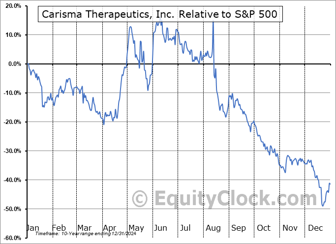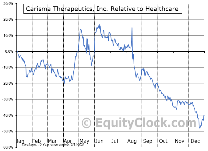 Analysis of the Carisma Therapeutics, Inc. (NASD:CARM) seasonal charts above shows that a Buy Date of April 2 and a Sell Date of June 29 has resulted in a geometric average return of 34.66% above the benchmark rate of the S&P 500 Total Return Index over the past 10 years. This seasonal timeframe has shown positive results compared to the benchmark in 7 of those periods. This is a good rate of success and the return strongly outperforms the relative buy-and-hold performance of the stock over the past 10 years by an average of 87.9% per year.