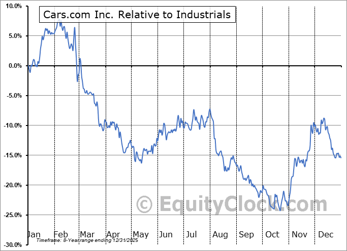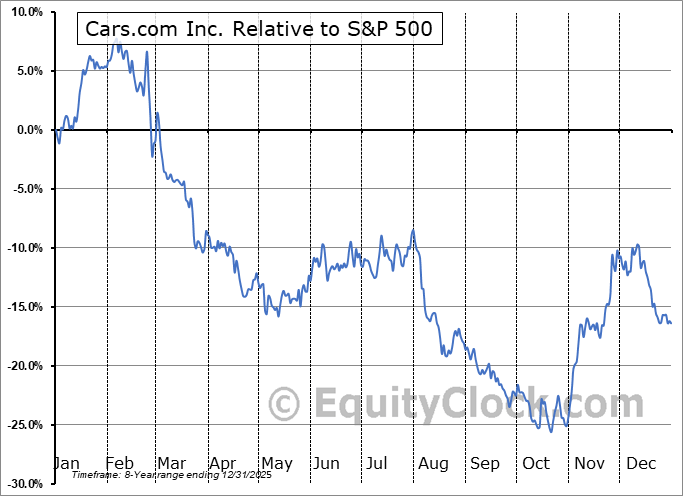 Analysis of the Cars.com Inc. (NYSE:CARS) seasonal charts above shows that a Buy Date of October 30 and a Sell Date of February 8 has resulted in a geometric average return of 14.44% above the benchmark rate of the S&P 500 Total Return Index over the past 8 years. This seasonal timeframe has shown positive results compared to the benchmark in 8 of those periods. This is an excellent rate of success and the return strongly outperforms the relative buy-and-hold performance of the stock over the past 8 years by an average of 35.72% per year.