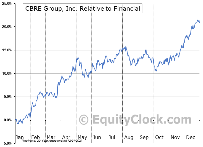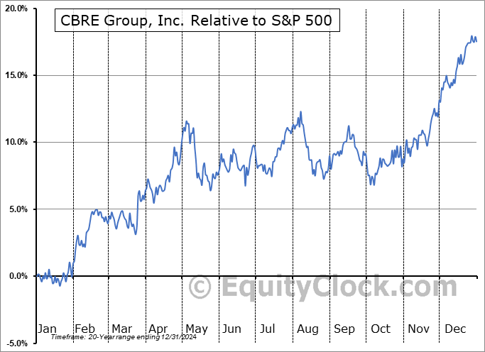 Analysis of the CBRE Group, Inc. (NYSE:CBRE) seasonal charts above shows that a Buy Date of November 12 and a Sell Date of February 18 has resulted in a geometric average return of 10.37% above the benchmark rate of the S&P 500 Total Return Index over the past 20 years. This seasonal timeframe has shown positive results compared to the benchmark in 19 of those periods. This is an excellent rate of success and the return strongly outperforms the relative buy-and-hold performance of the stock over the past 20 years by an average of 7.68% per year.