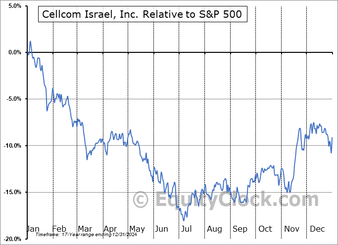 Analysis of the Cellcom Israel, Inc. (OTCMKT:CELJF) seasonal charts above shows that a Buy Date of September 12 and a Sell Date of December 5 has resulted in a geometric average return of 9.43% above the benchmark rate of the S&P 500 Total Return Index over the past 17 years. This seasonal timeframe has shown positive results compared to the benchmark in 15 of those periods. This is a very good rate of success and the return strongly outperforms the relative buy-and-hold performance of the stock over the past 17 years by an average of 25.26% per year.