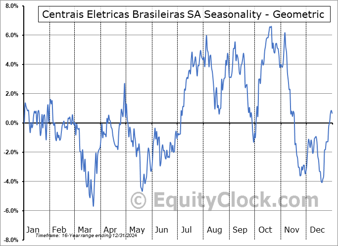 Centrais Eletricas Brasileiras SA (NYSE:EBR/B) Seasonal Chart