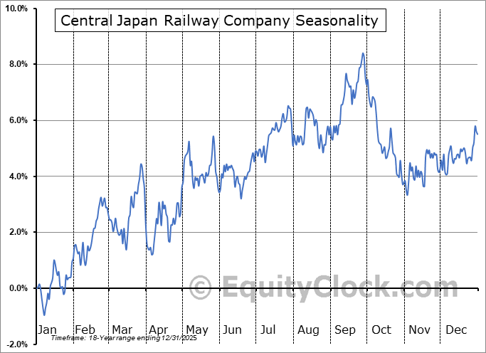 Central Japan Railway Company (OTCMKT:CJPRY) Seasonal Chart
