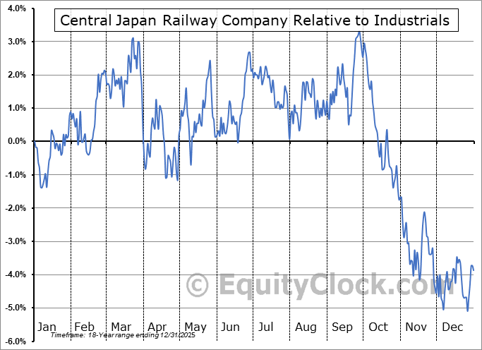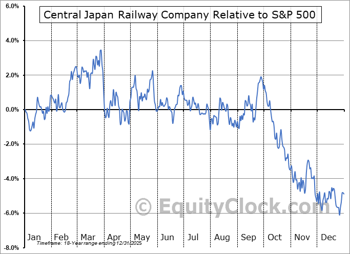 Analysis of the Central Japan Railway Company (OTCMKT:CJPRY) seasonal charts above shows that a Buy Date of December 2 and a Sell Date of March 22 has resulted in a geometric average return of 1.56% above the benchmark rate of the S&P 500 Total Return Index over the past 18 years. This seasonal timeframe has shown positive results compared to the benchmark in 12 of those periods. This is a good rate of success and the return strongly outperforms the relative buy-and-hold performance of the stock over the past 18 years by an average of 8.51% per year.