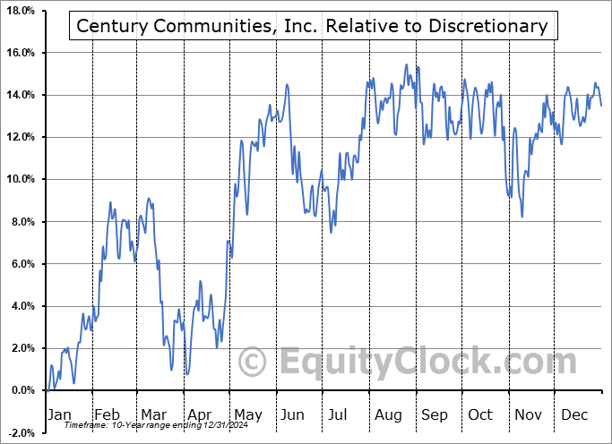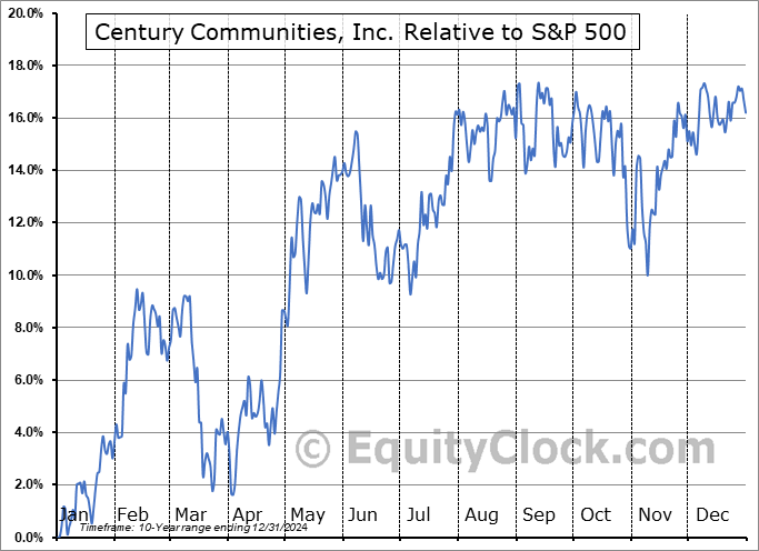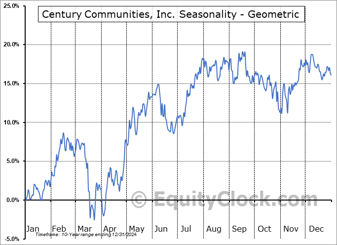 Analysis of the Century Communities, Inc. (NYSE:CCS) seasonal charts above shows that a Buy Date of October 13 and a Sell Date of March 10 has resulted in a geometric average return of 6.22% above the benchmark rate of the S&P 500 Total Return Index over the past 10 years. This seasonal timeframe has shown positive results compared to the benchmark in 9 of those periods. This is an excellent rate of success and the return strongly outperforms the relative buy-and-hold performance of the stock over the past 10 years by an average of 3.32% per year.