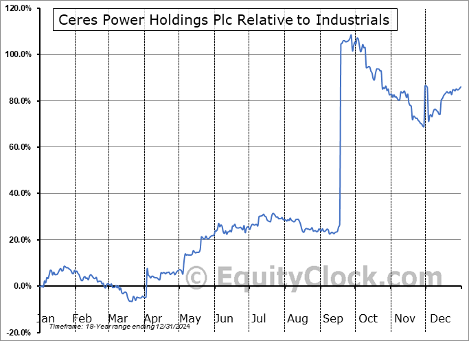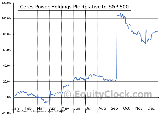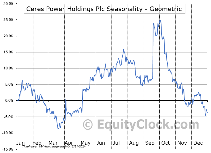 Analysis of the Ceres Power Holdings Plc (OTCMKT:CPWHF) seasonal charts above shows that a Buy Date of March 24 and a Sell Date of July 23 has resulted in a geometric average return of 18.69% above the benchmark rate of the S&P 500 Total Return Index over the past 18 years. This seasonal timeframe has shown positive results compared to the benchmark in 14 of those periods. This is a good rate of success and the return strongly outperforms the relative buy-and-hold performance of the stock over the past 18 years by an average of 31.79% per year.