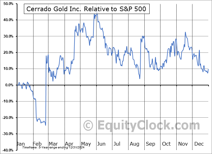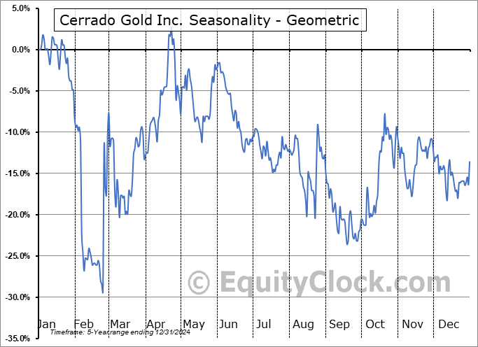 Analysis of the Cerrado Gold Inc. (TSXV:CERT.V) seasonal charts above shows that a Buy Date of February 26 and a Sell Date of May 30 has resulted in a geometric average return of 14.25% above the benchmark rate of the S&P 500 Total Return Index over the past 5 years. This seasonal timeframe has shown positive results compared to the benchmark in 5 of those periods. This is an excellent rate of success and the return strongly outperforms the relative buy-and-hold performance of the stock over the past 5 years by an average of 38.75% per year.