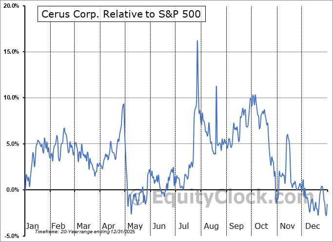 Analysis of the Cerus Corp. (NASD:CERS) seasonal charts above shows that a Buy Date of November 5 and a Sell Date of February 17 has resulted in a geometric average return of 2.16% above the benchmark rate of the S&P 500 Total Return Index over the past 20 years. This seasonal timeframe has shown positive results compared to the benchmark in 14 of those periods. This is a good rate of success and the return strongly outperforms the relative buy-and-hold performance of the stock over the past 20 years by an average of 18.84% per year.